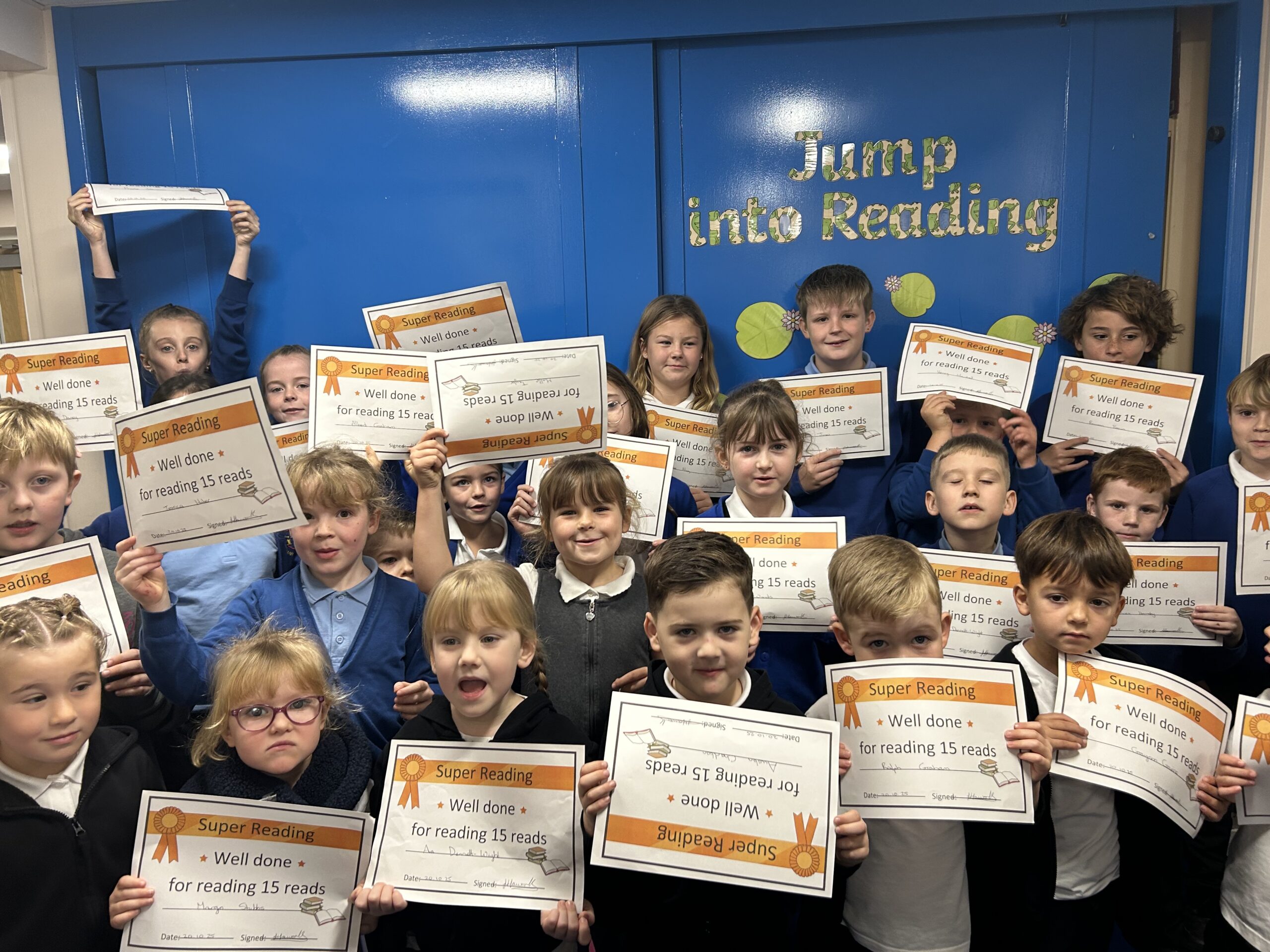 ‘Well done to our children for achieving their first certificate for their reading at home.’